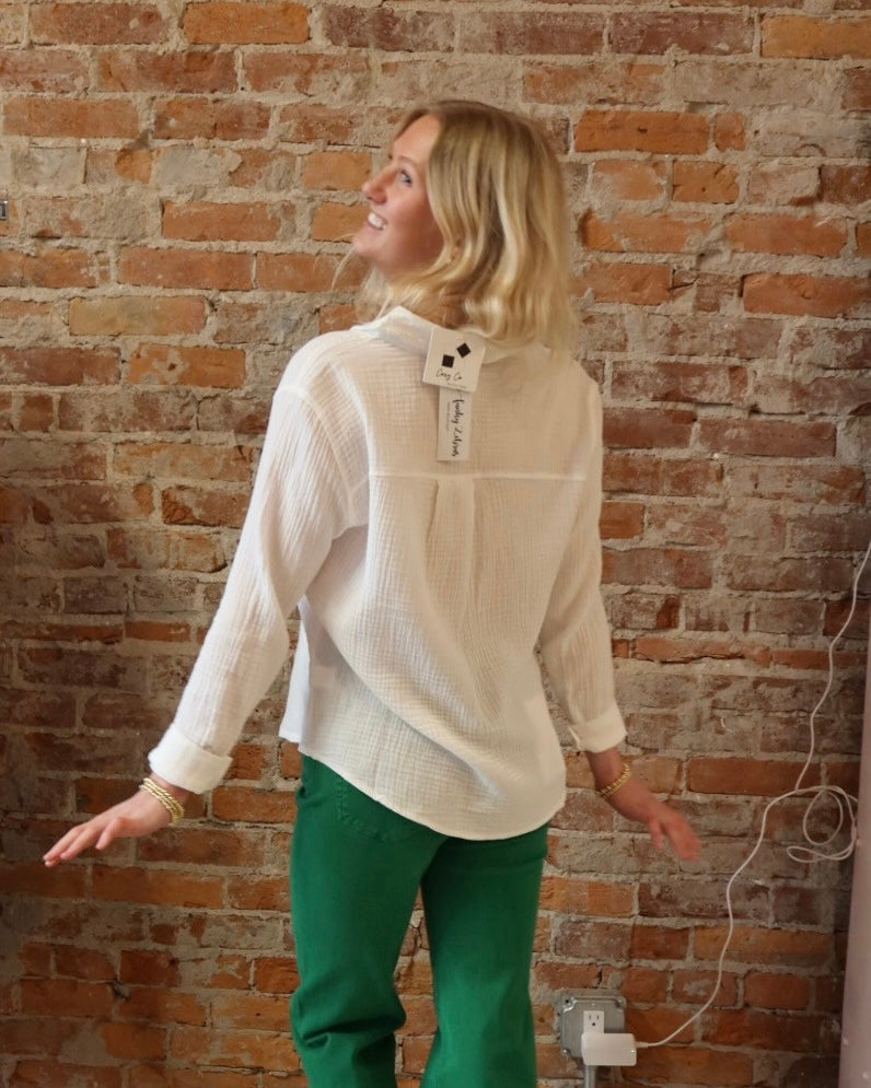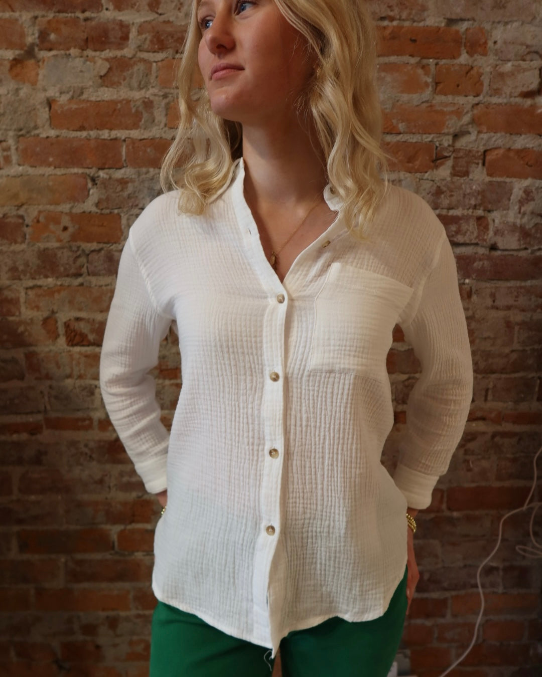 Light, fluffy textured cotton long sleeve top